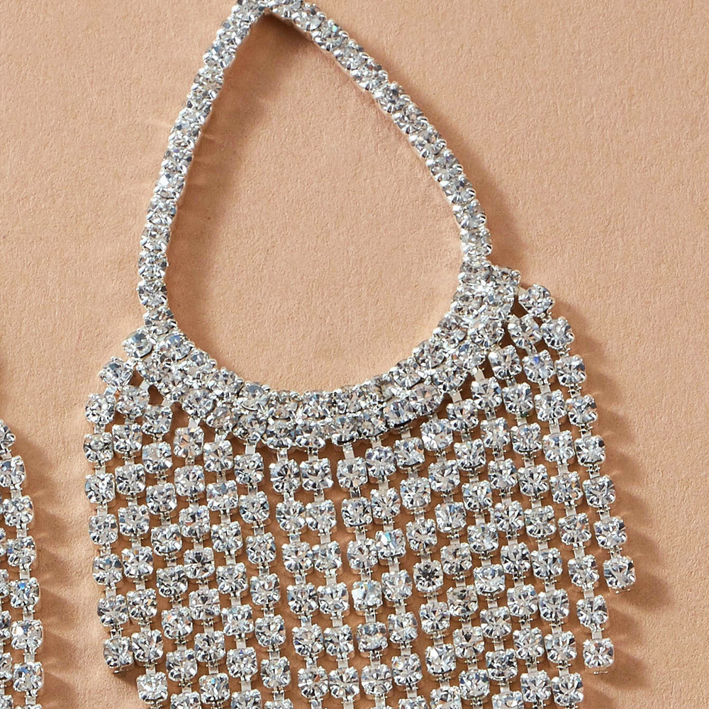 Product information: Bohemian Tassel Shiny Long Rhinestone-encrusted Earrings